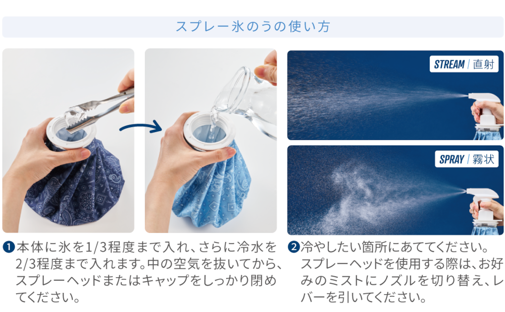 スプレータイプの氷のうで、運動後や外出先でも手軽にクールダウン。