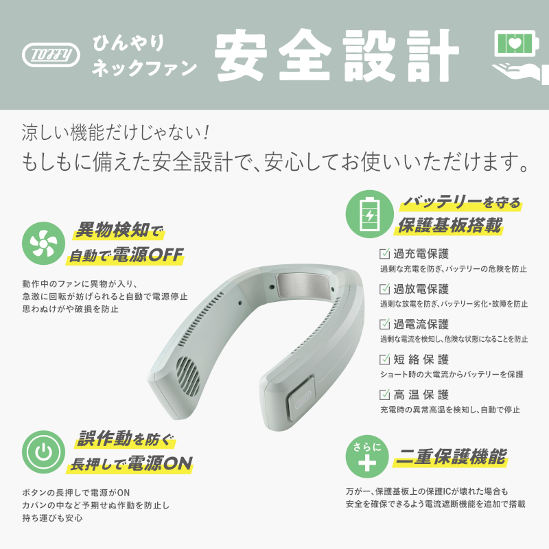 冷却プレートで首元を冷やしながら、上下送風で心地よい風を首全体に届けます!