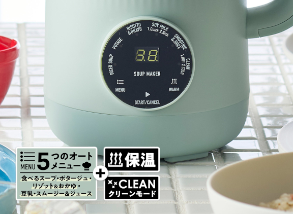 食べるスープやポタージュ、おかゆなどがスイッチひとつで自動で作れるオートスープブレンダー。