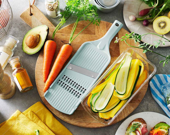 表面で薄切り、裏面で細切り&薬味おろしができる1台3役のハンディスライサー!